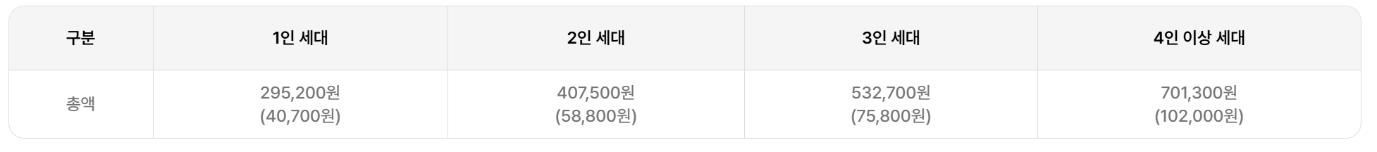 | 1인 세대 | 295,200원 |