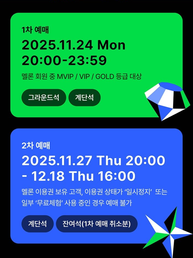 이번 MMA2025 티켓팅은 1차 선예매와 2차 일반예매로 나뉘어 진행됩니다.