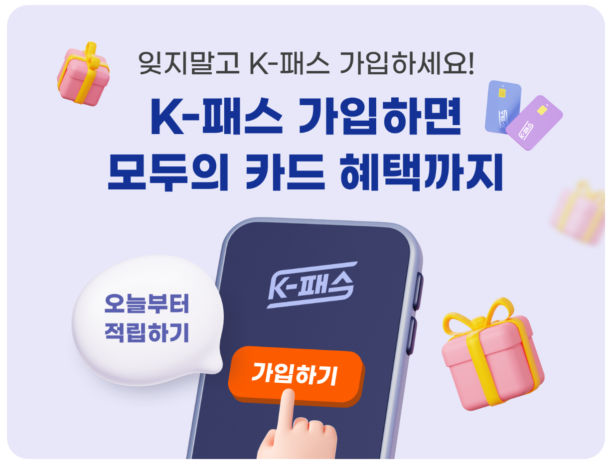 ✅ 신규 사용자는 K패스 제휴 카드사(신한·국민·우리·삼성 등)에서 카드를 발급한 후 K패스 공식 홈페이지(korea-pass.kr)