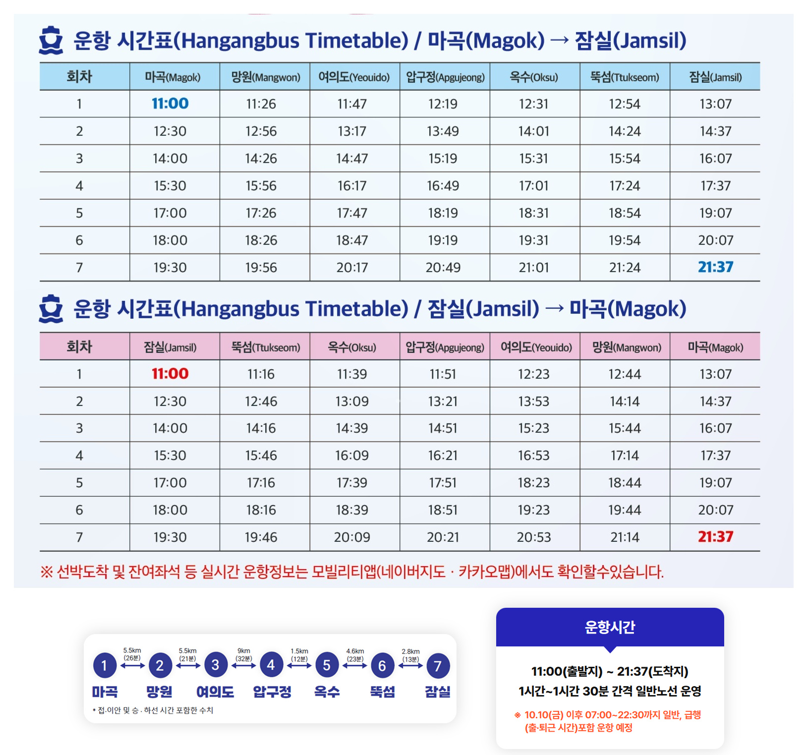 한강버스 노선 & 시간표 & 운행 요금 총정리